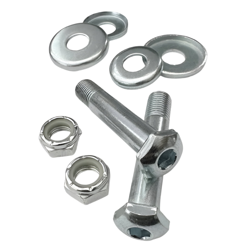 - 2 kingpins, 2 nuts 2 top & 2 bottom washers